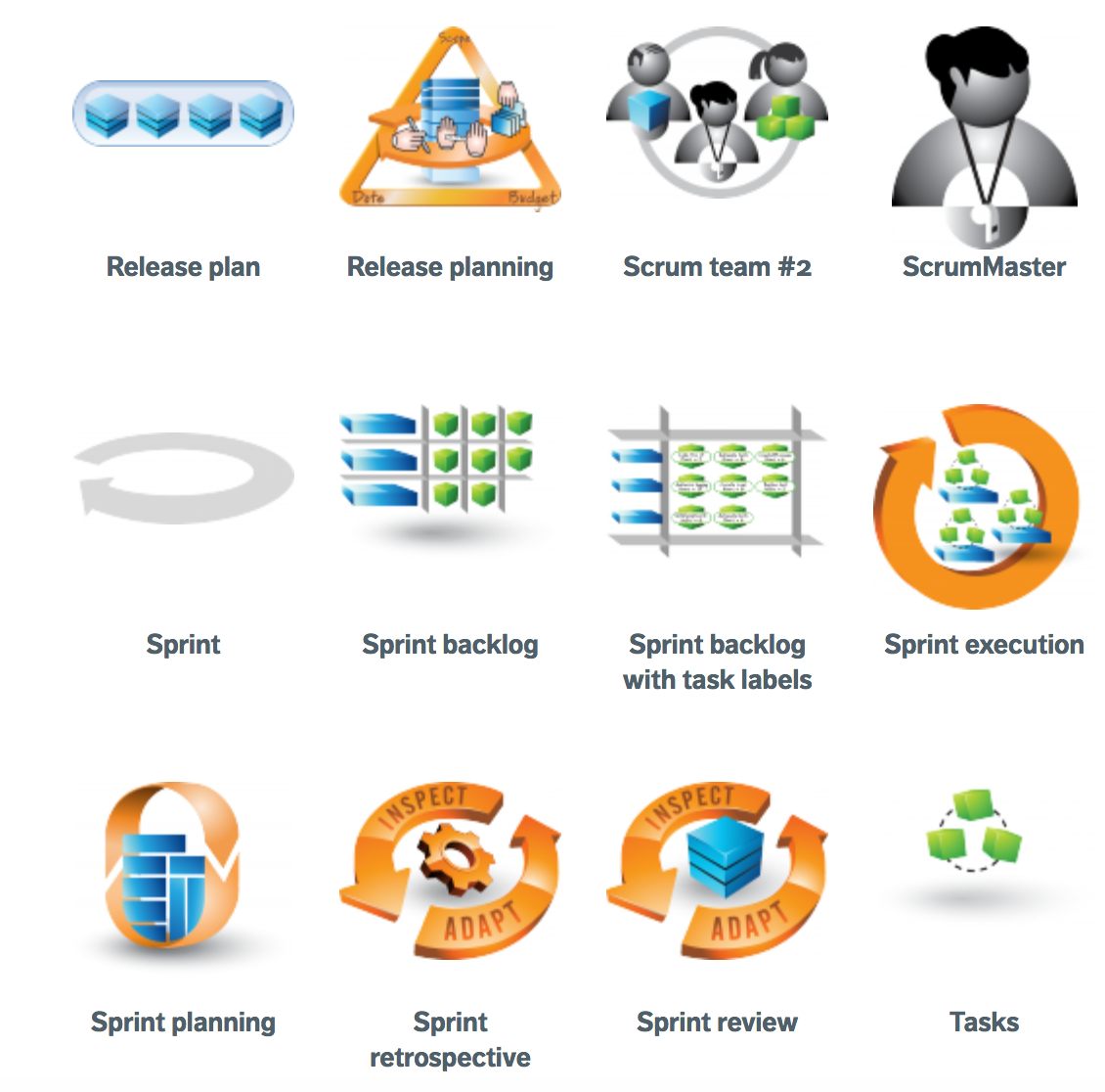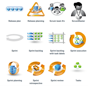 One of the things I really like about Rubin’s approach is the visuals. Though the text can get far down in the weeds sometimes and perhaps be not as interesting for non-technical people, he built a visual vocabulary for aspects of Scrum that really helps concepts make sense across the book. And, even better, Rubin makes his “AGILExicon” available for free on his consulting firm’s website. I’ve used his icons, with attribution, in a number of presentations I’ve given to faculty and students about Scrum, and the vivid icons really help capture the roles and the processes of Scrum very well.