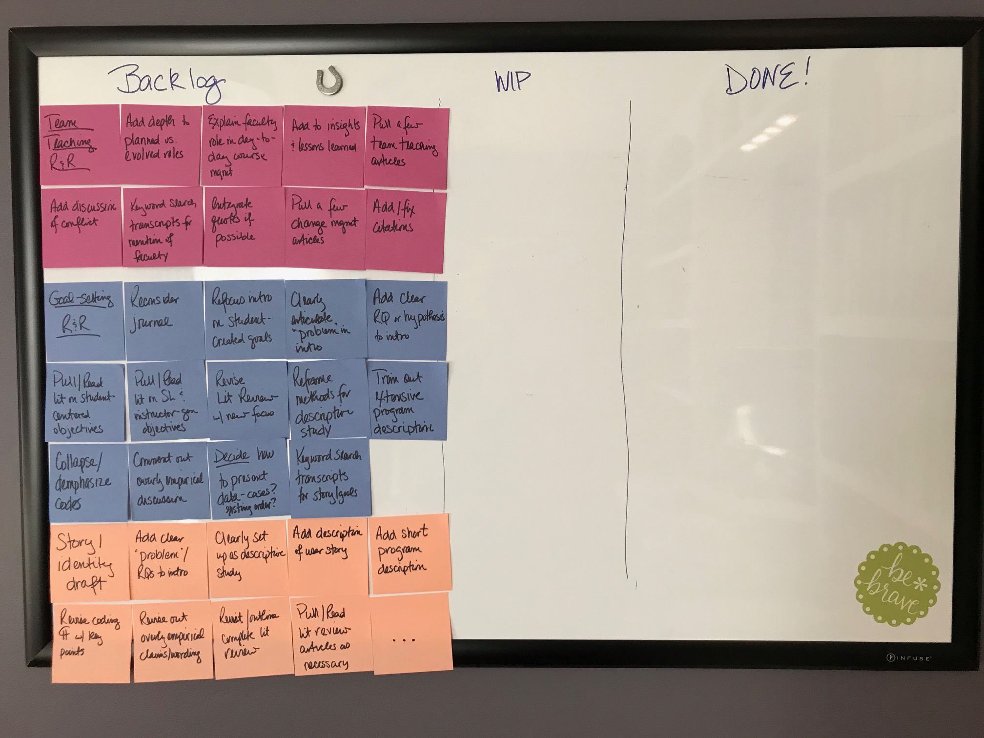 In the last week, I’ve shared how I wrapped up 2017 intentionally using the Scrum review and retrospective meetings and how I’m using the software development user story format to frame my goals for the first part of 2018 (now through the end of the Spring semester in May). Because I don’t start teaching the second pilot of our Design Thinking Studio in Social Innovation immersive semester pilot program until January 29th, now is the perfect time to get granular on my writing pipeline epic and complete several writing projects that have been hanging out on my backlog for too long.