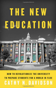 If you read my previous post about responding to change over maintaining the status quo in higher education, you can pretty easily imagine how I feel about Davidson’s 2017 book, The New Education: How to Revolutionize the University to Prepare Students for a World in Flux. My underlines are plentiful, and my annotations peppered with “hell yes!”, “finally,” “it’s about time.” While many likely know Davidson from her work with HASTAC, which has moved from a site for scholars to discuss how to integrate technology into learning into a full-blown hub for innovation in higher ed. This new book is a direct outgrowth of that evolution. Davidson wants us to actually rethink education as a whole, not just tiny pieces within our immediate control in one context: