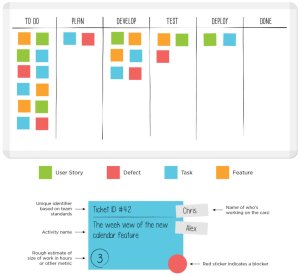 In a post from December, I covered Scrum board basics. The most basic version of a Scrum board is one that has three columns, one each for Backlog, Work in Progress (WIP), and Done. Let’s take it up a notch today with some tips for personalizing your board: